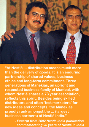The Manekia Family’s association with Nestlé India dates back over 80 years. Since the 1920’s we have built a relationship of shared values, commitment and of business ethics not just with Nestlé, but also with our clients.
