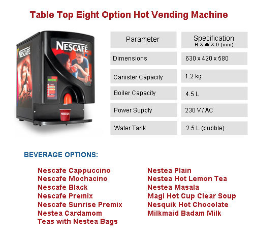 For additional details of beverage choices for our machines, please refer to our Beverages section.
